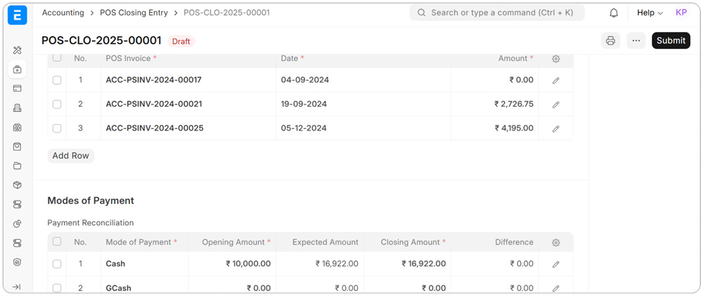 Ensure your financial records are error-free with ERPNext’s cash reconciliation tools. Automatically track daily sales, match cash collections with POS transactions, and generate real-time reports. Gain complete financial clarity and eliminate discrepancies in revenue tracking.